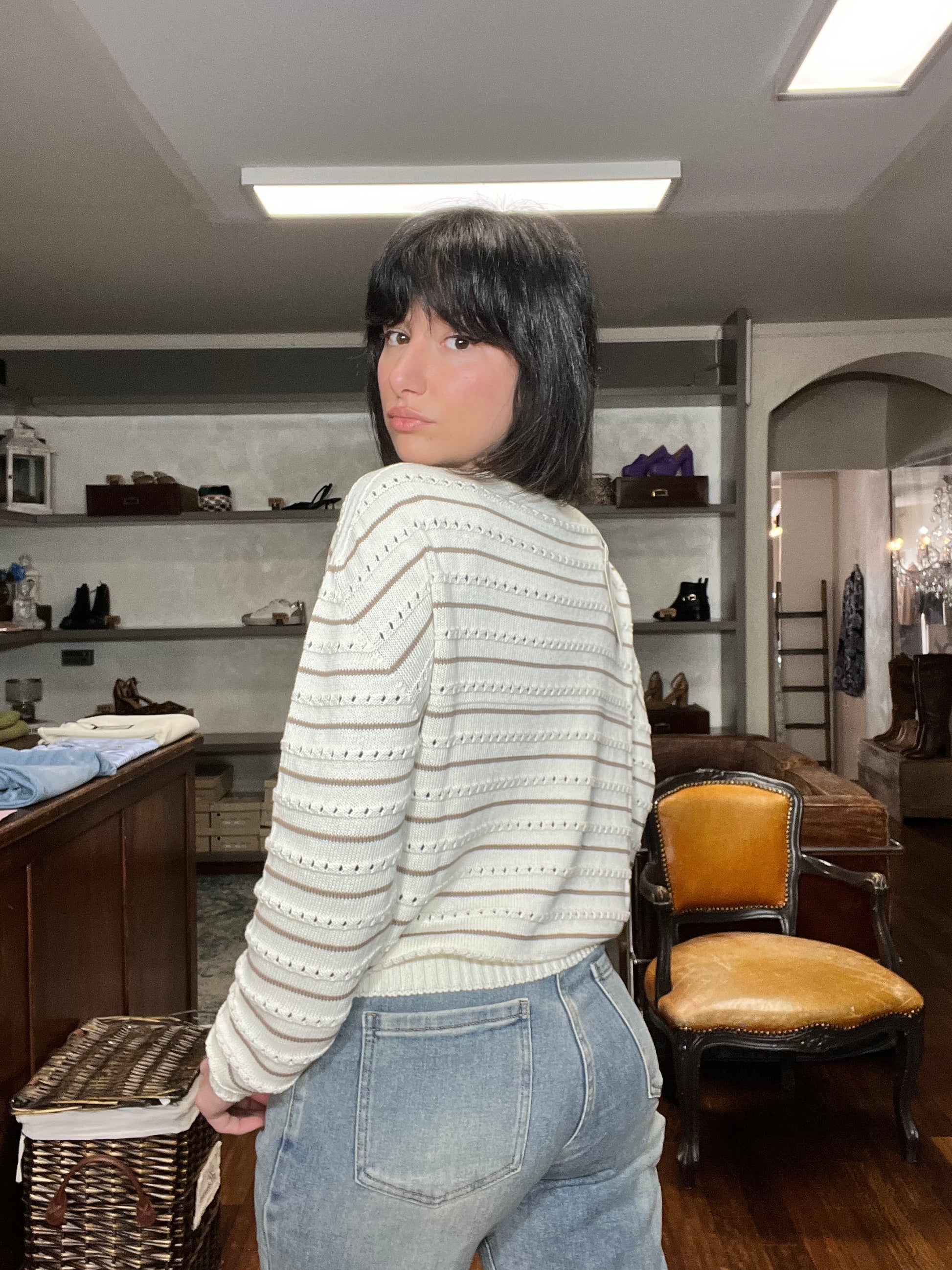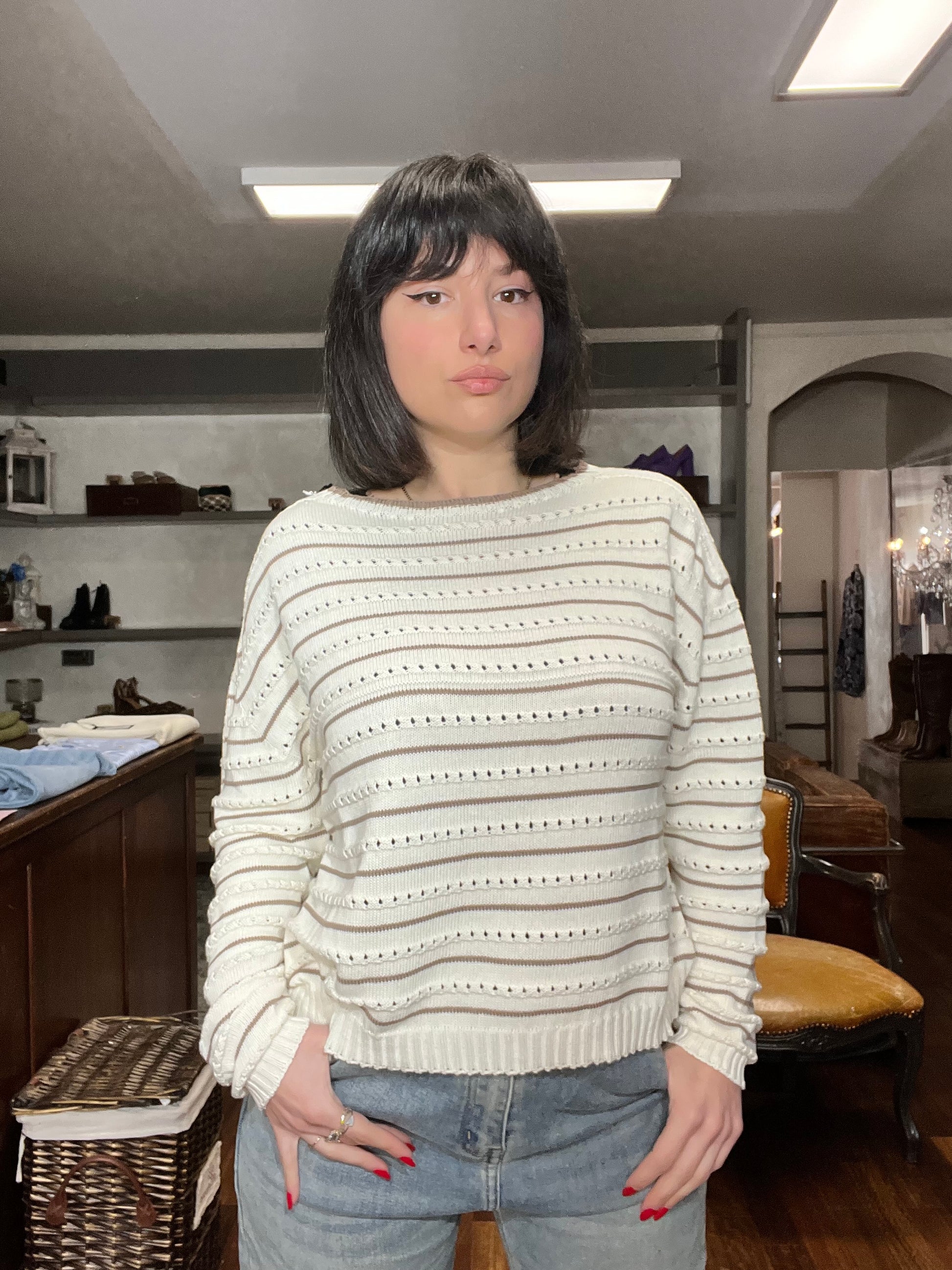 Maglia 100% cotone in trama. Taglia unica vestibilità regolare. Veste fino tg 46.